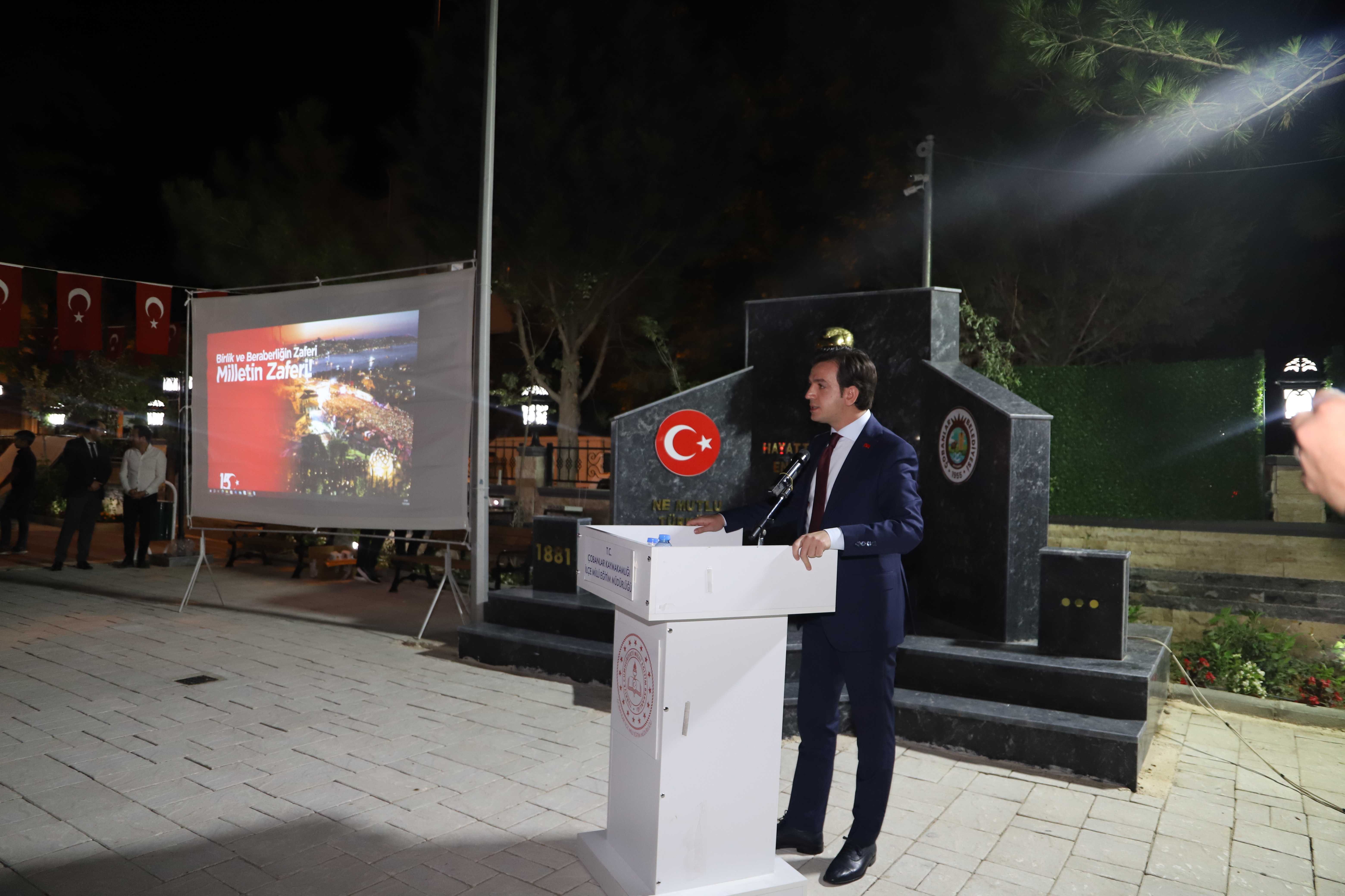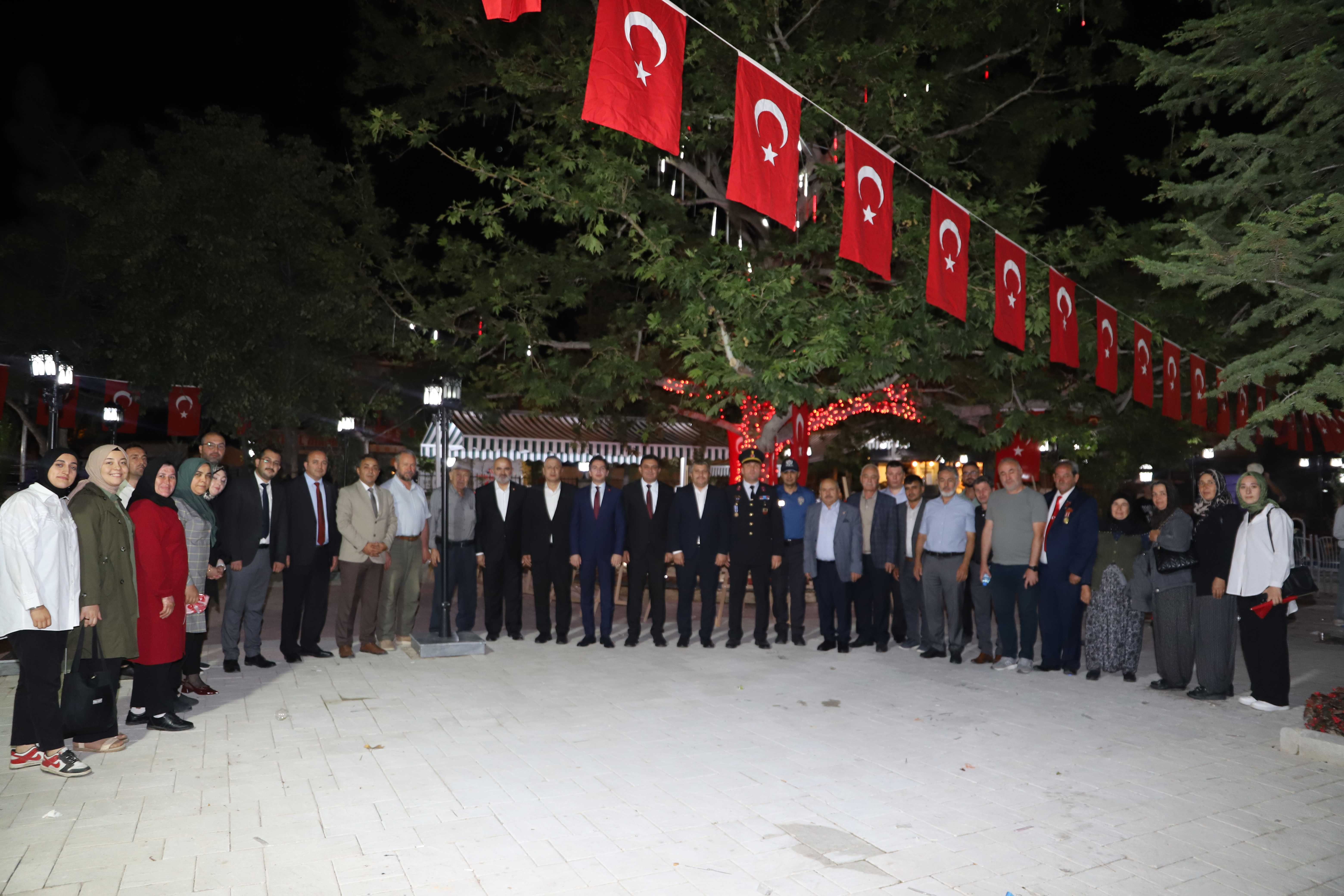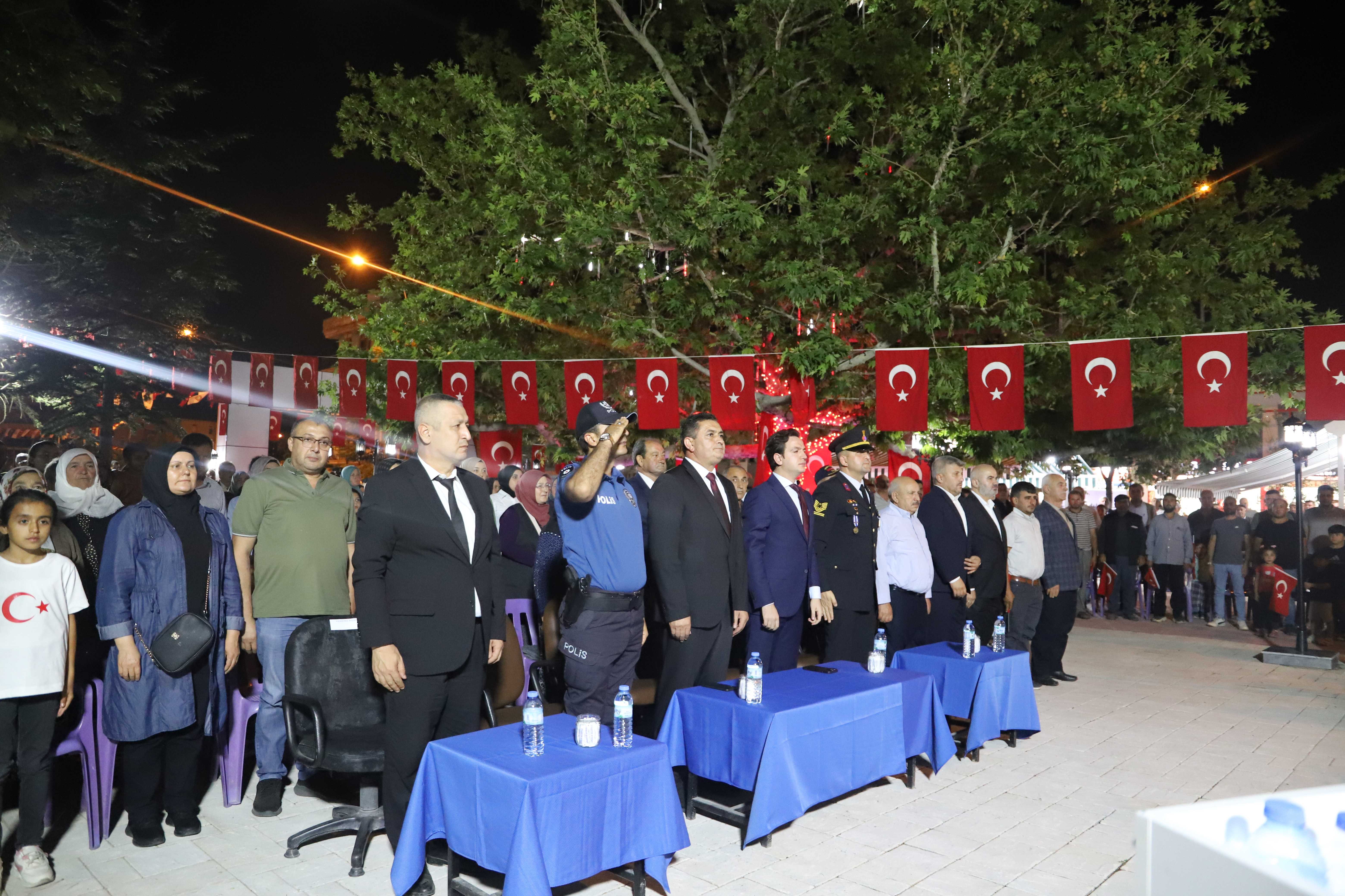 ihanete karşı tek yürek olan necip milletimizin cesaretiyle yazılan 15 Temmuz destanının 8. yıl dönümü münasebetiyle Cumhuriyet Meydanında düzenlenen programa İlçe Kaymakamı Sedat Akpınar, Belediye Başkanı Ali Altuntaş, ilçe protokolü, şehit aileleri, gaziler ve çok sayıda vatandaşın katılımı ile aziz milletimizin asil kahramanları şehit ve gazilerimiz bir kez daha dualarla anıldı.
