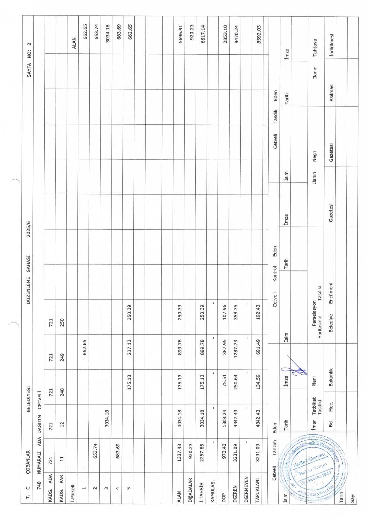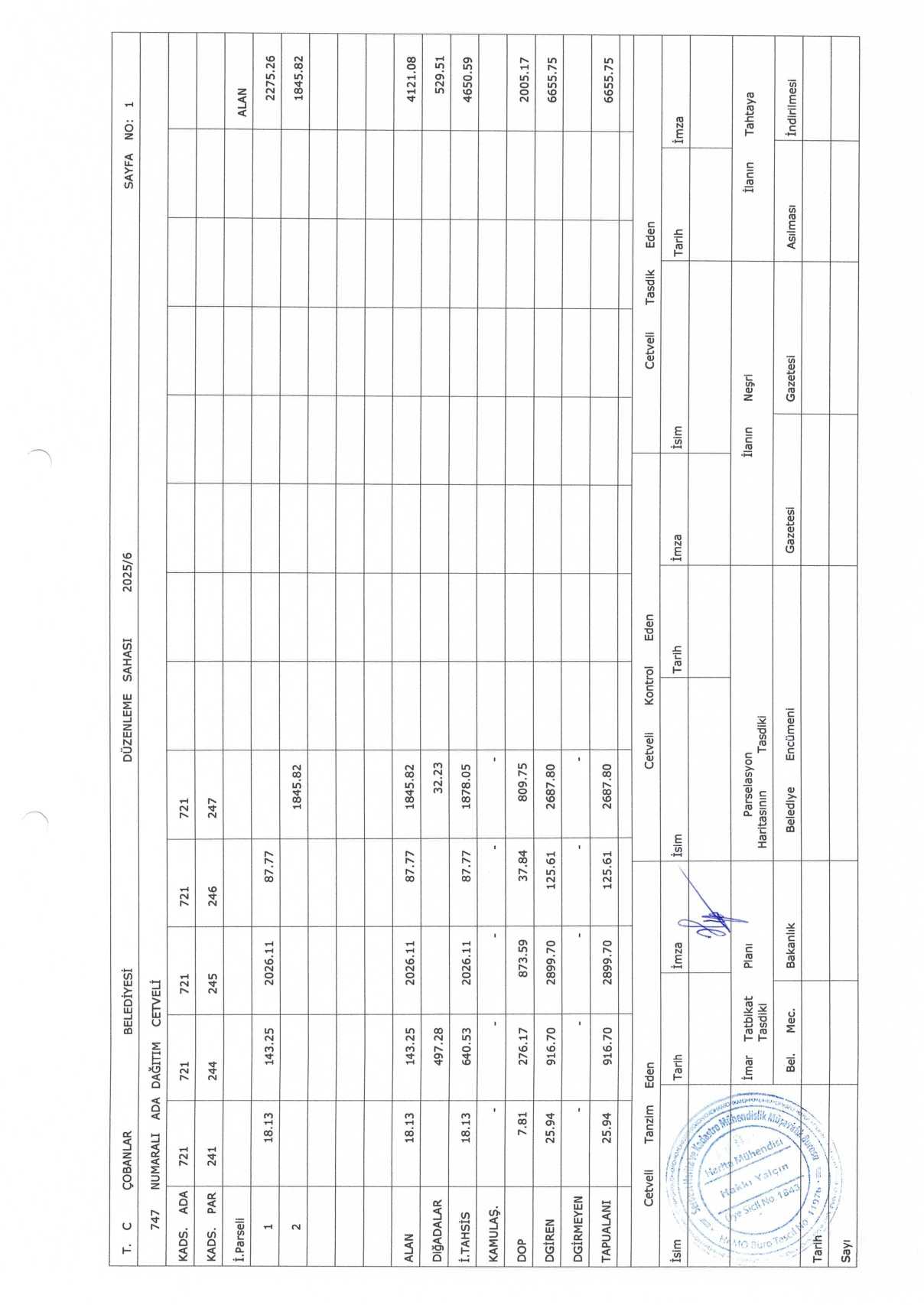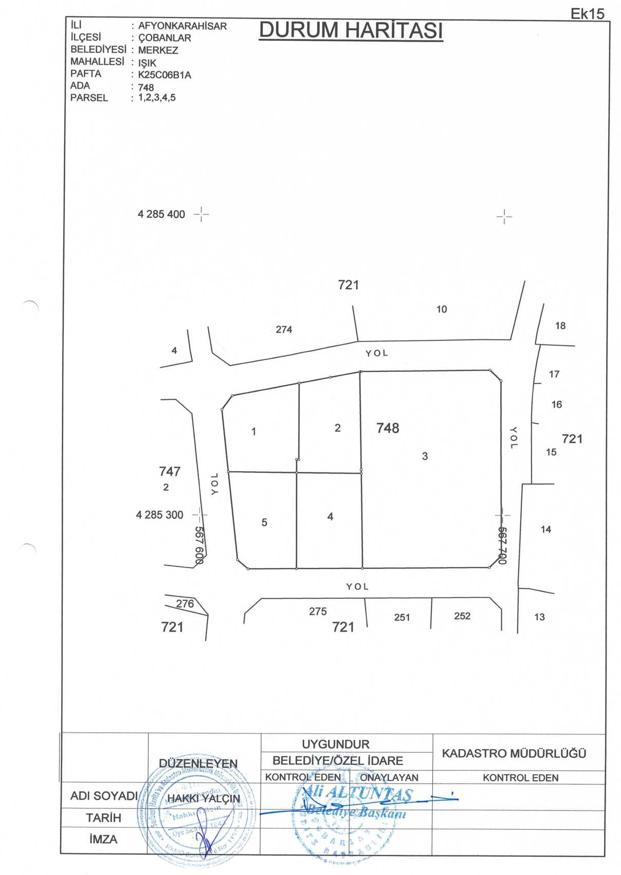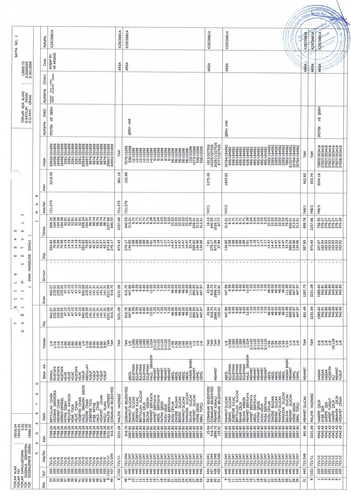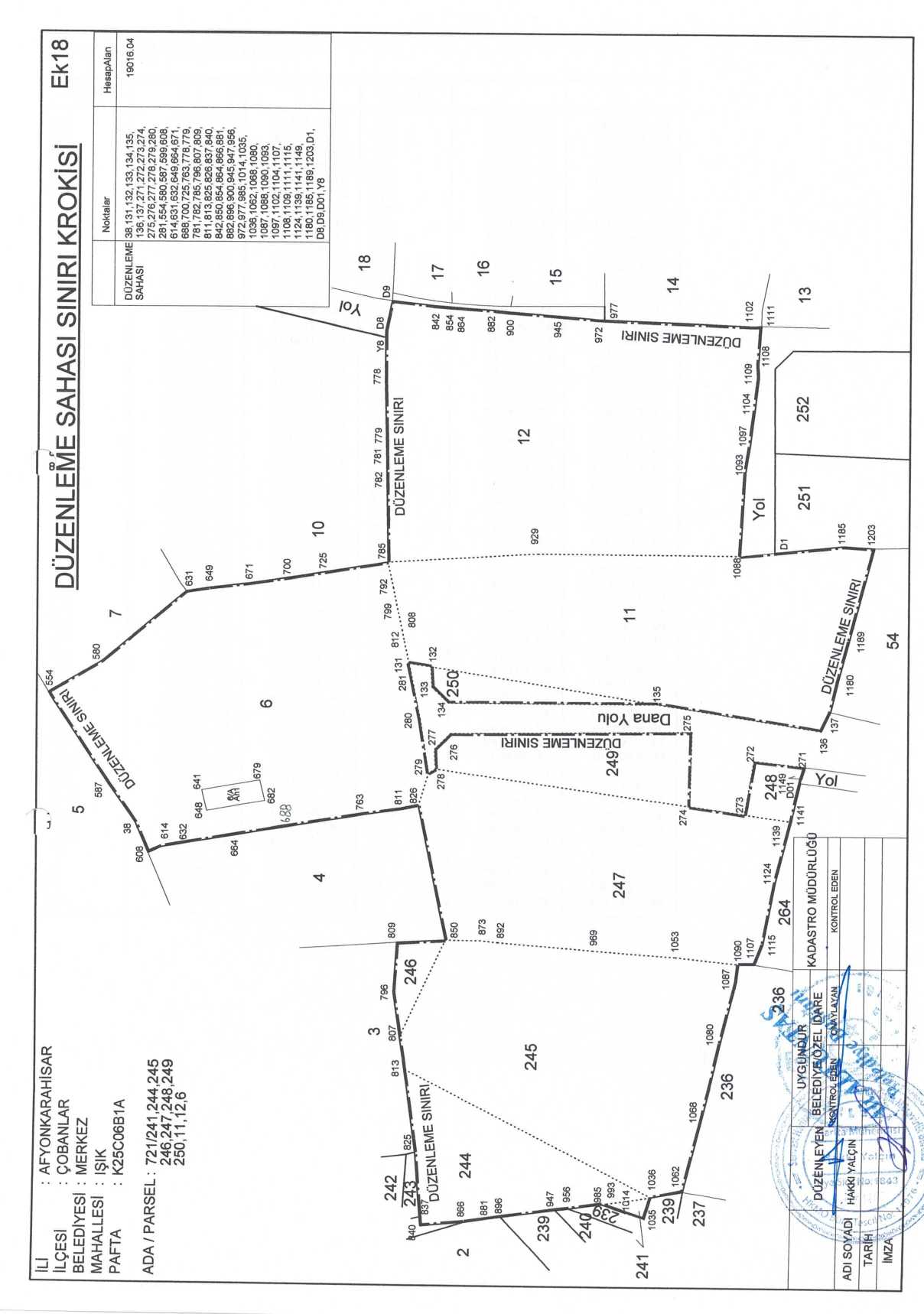 Çobanlar Belediyesi encümen kararıyla onaylanmış olup parselasyon planı ve ada