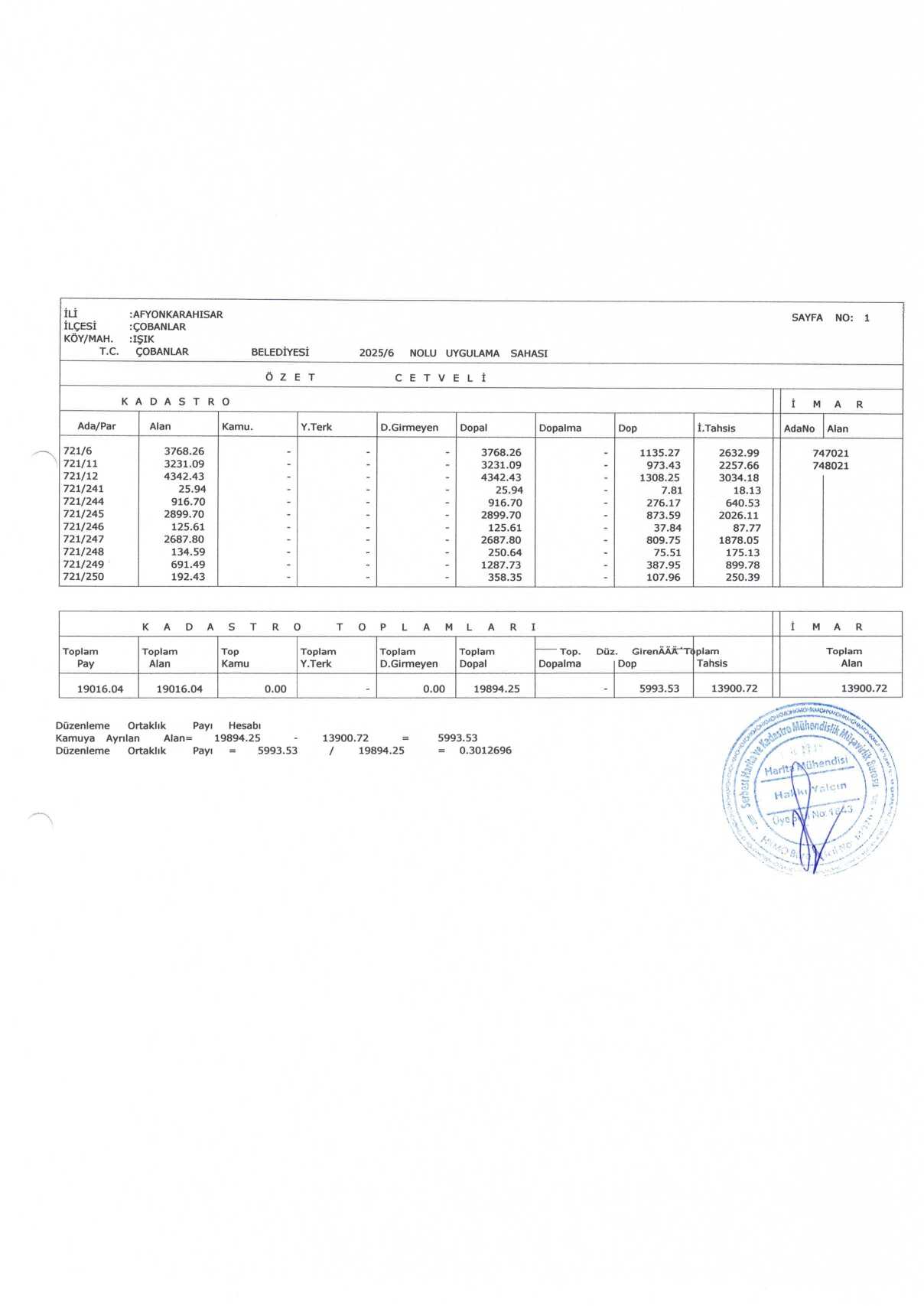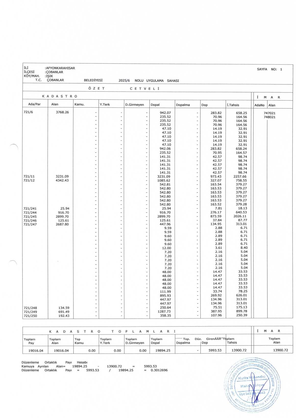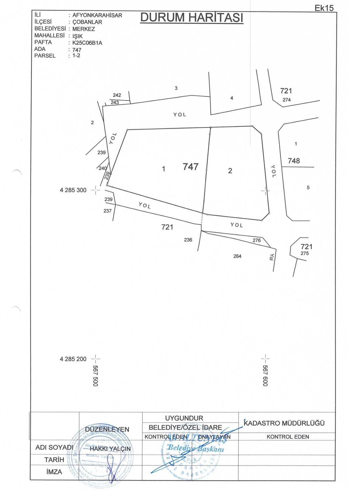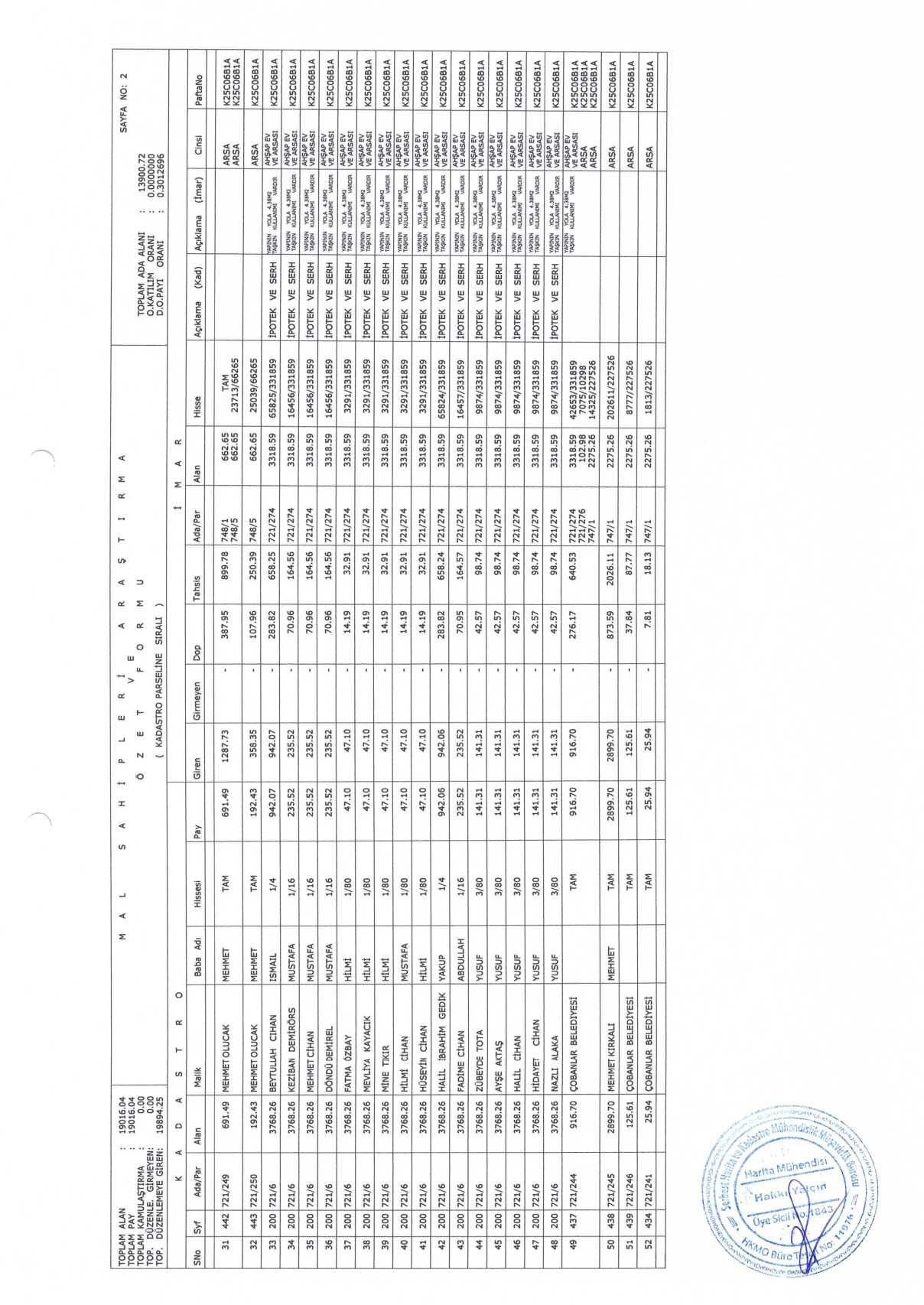 Çobanlar Belediyesi encümen kararıyla onaylanmış olup parselasyon planı ve ada