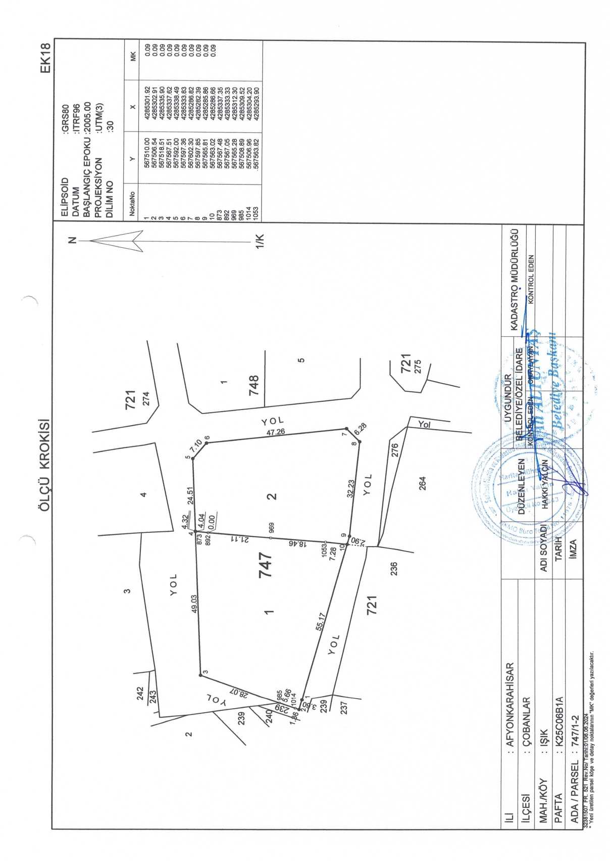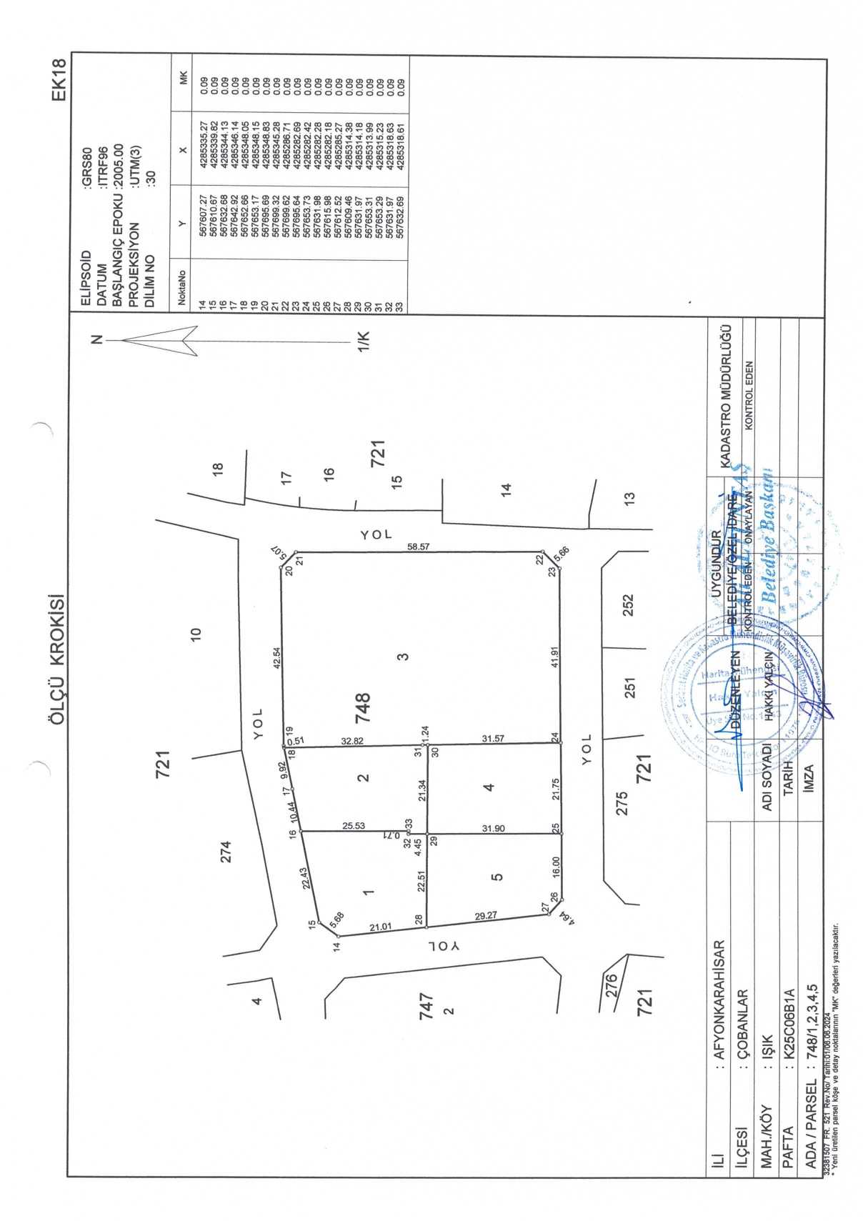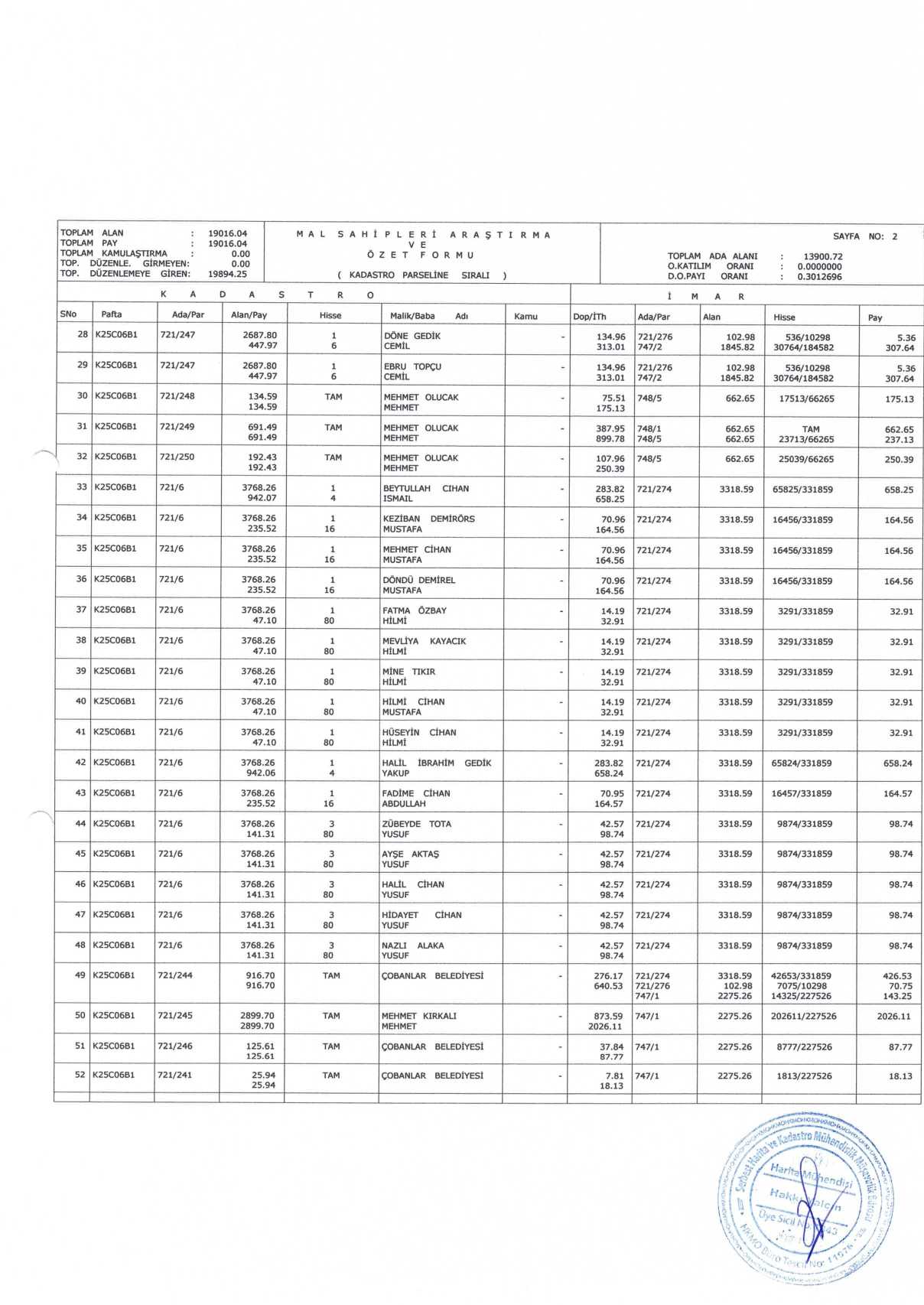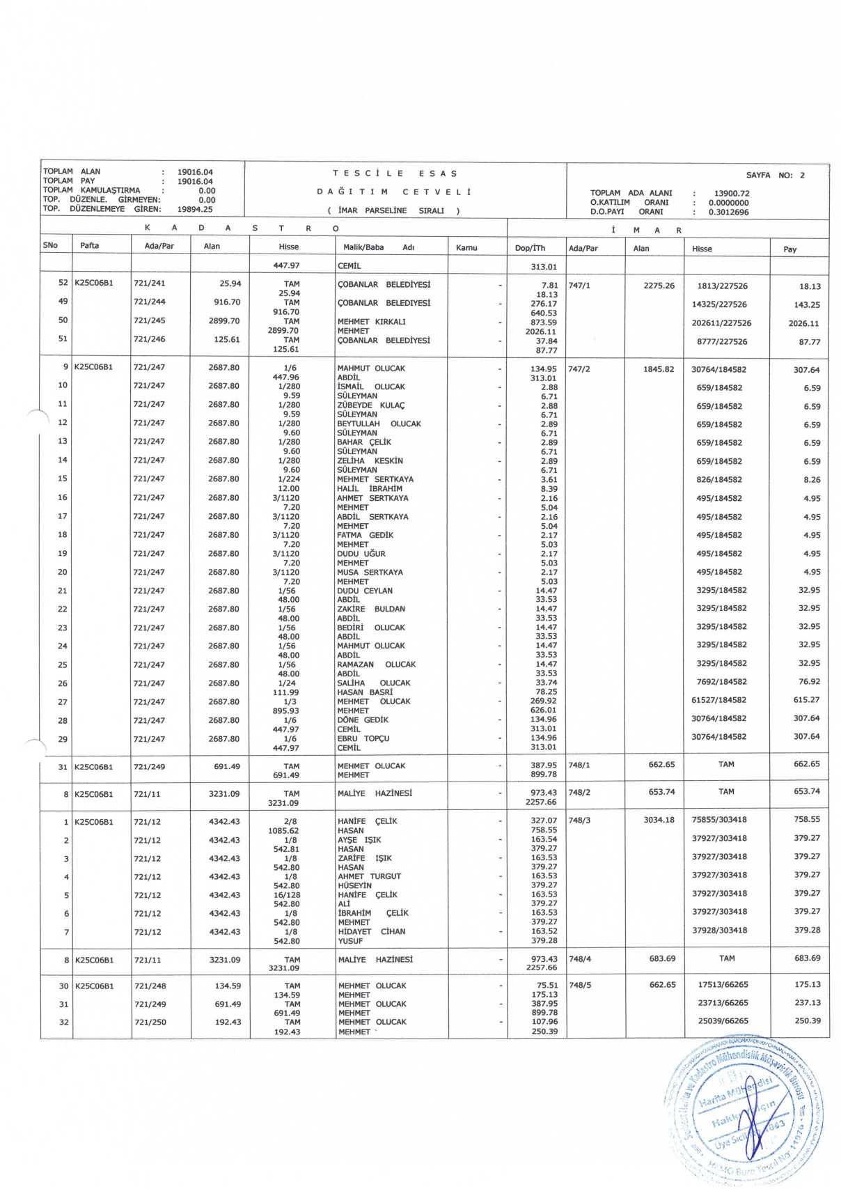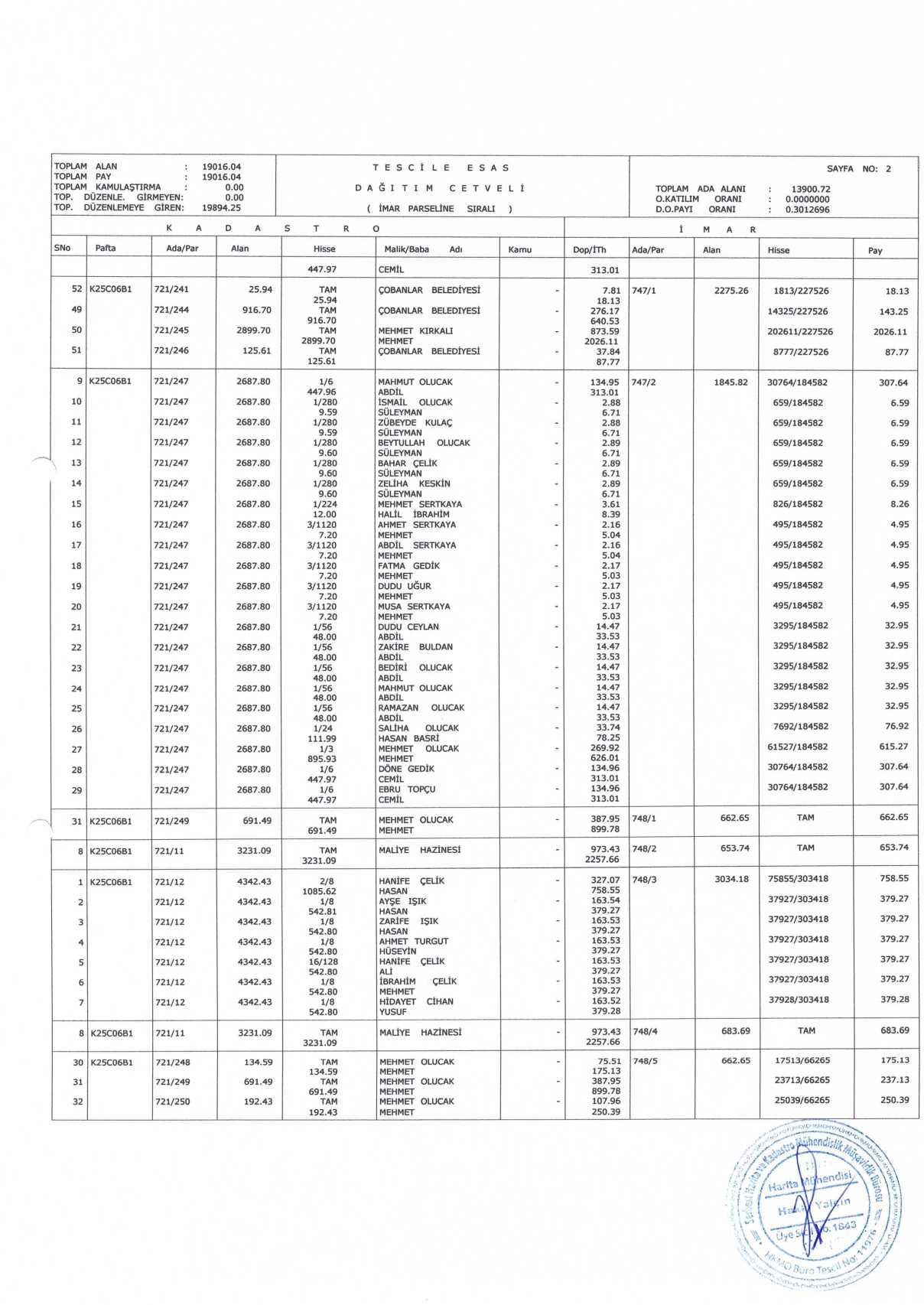 Çobanlar Belediyesi encümen kararıyla onaylanmış olup parselasyon planı ve ada