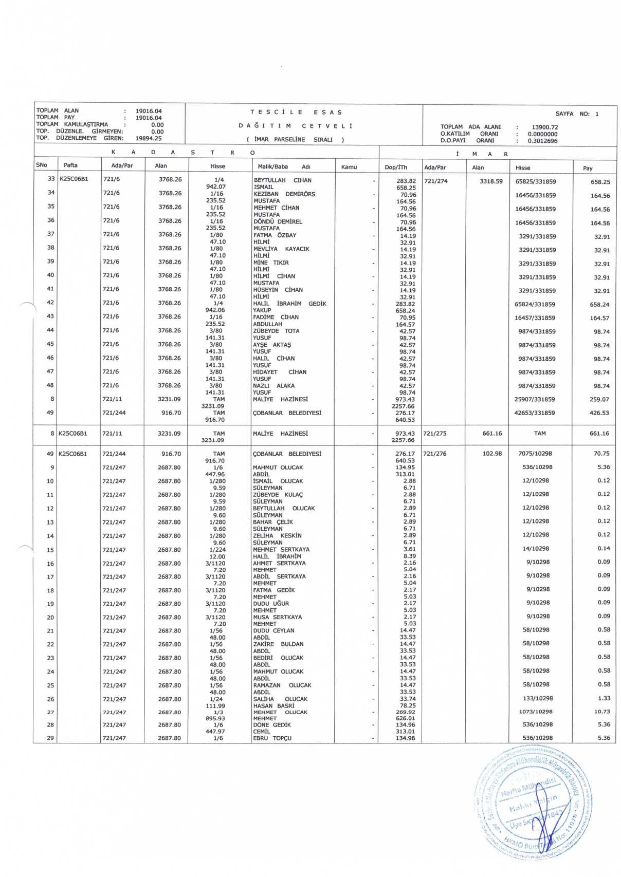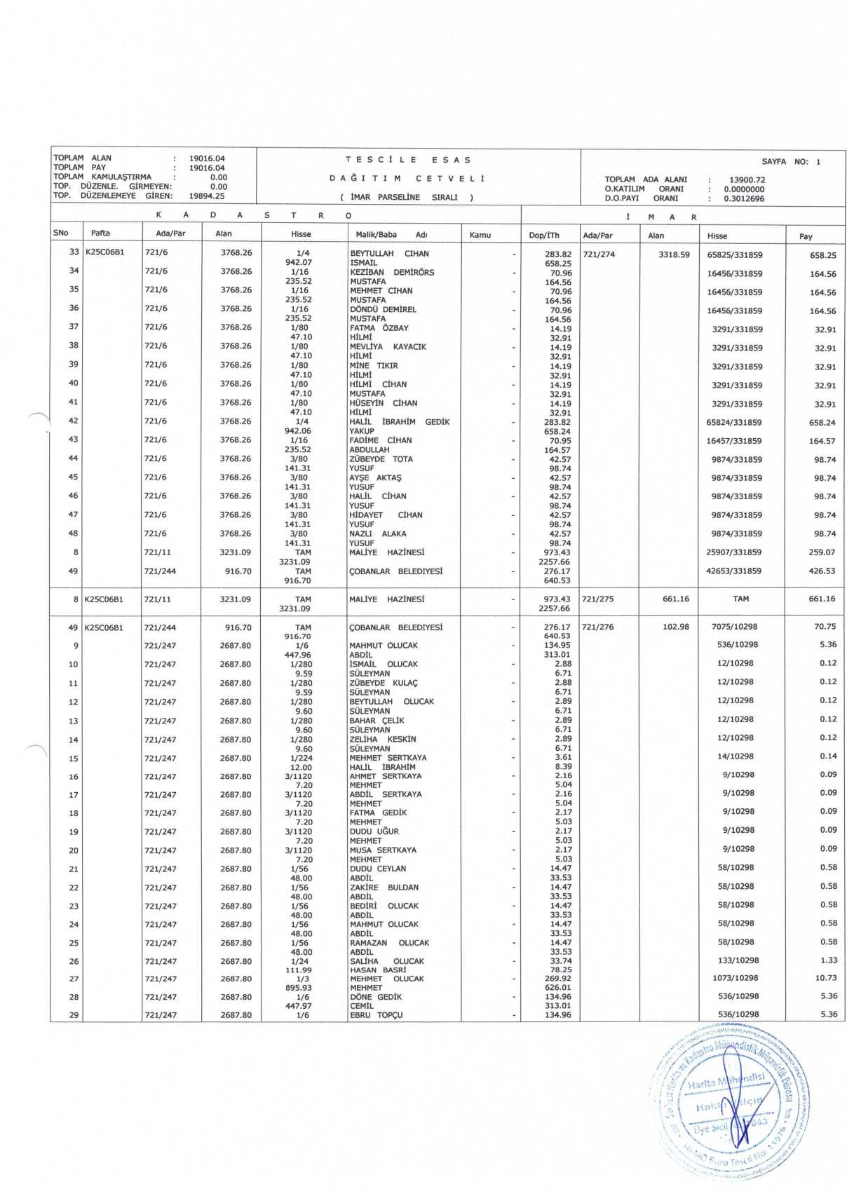 parsel dağıtım cetvelleri 3194 sayılı yasa gereğince 30(otuz) gün süreyle duyurulmak üzere belediyemiz internet sitesinde ve PARSİD