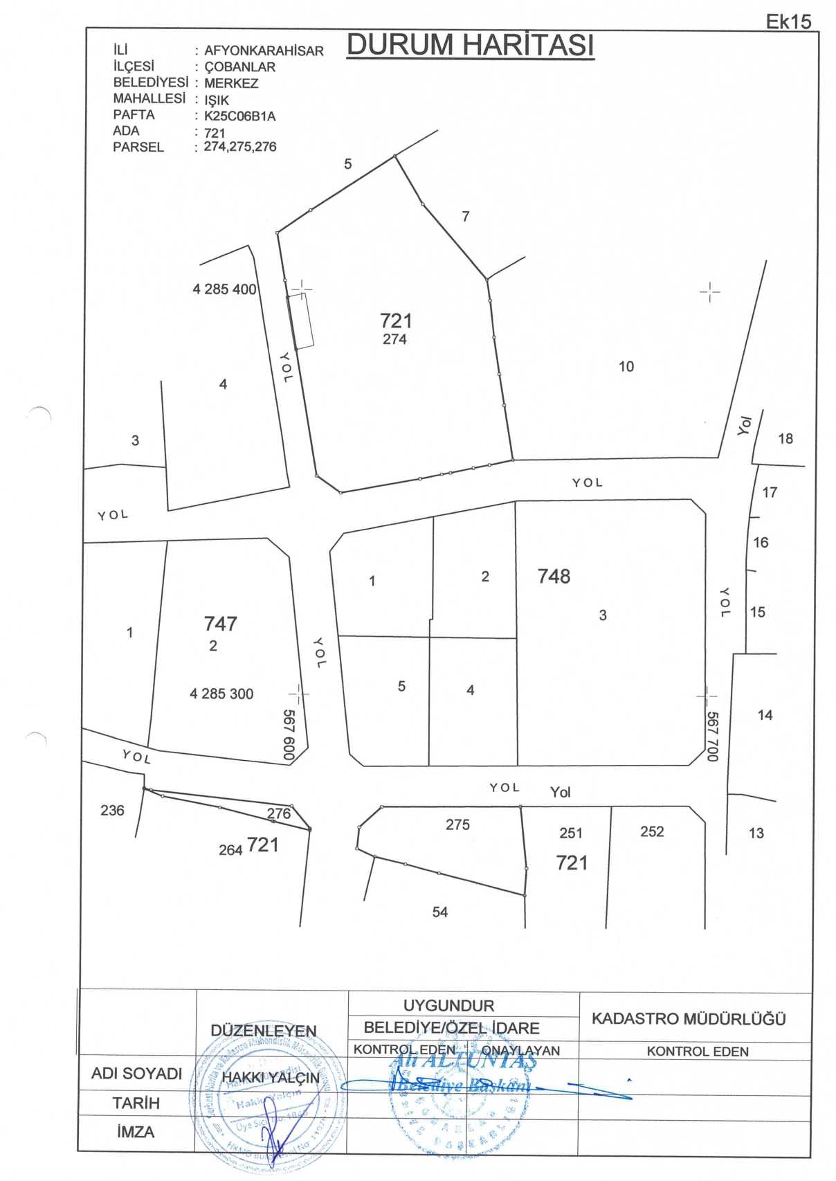 İlçemiz Işık Mahallesi 721 Ada, 274 no’lu, 275 no’lu ve 276 no’lu parsellerin, 747 ada 1no’lu , 2 no’lu parsellerin ve 748 Ada 1no’lu , 2 no’lu 3 no’lu , 4