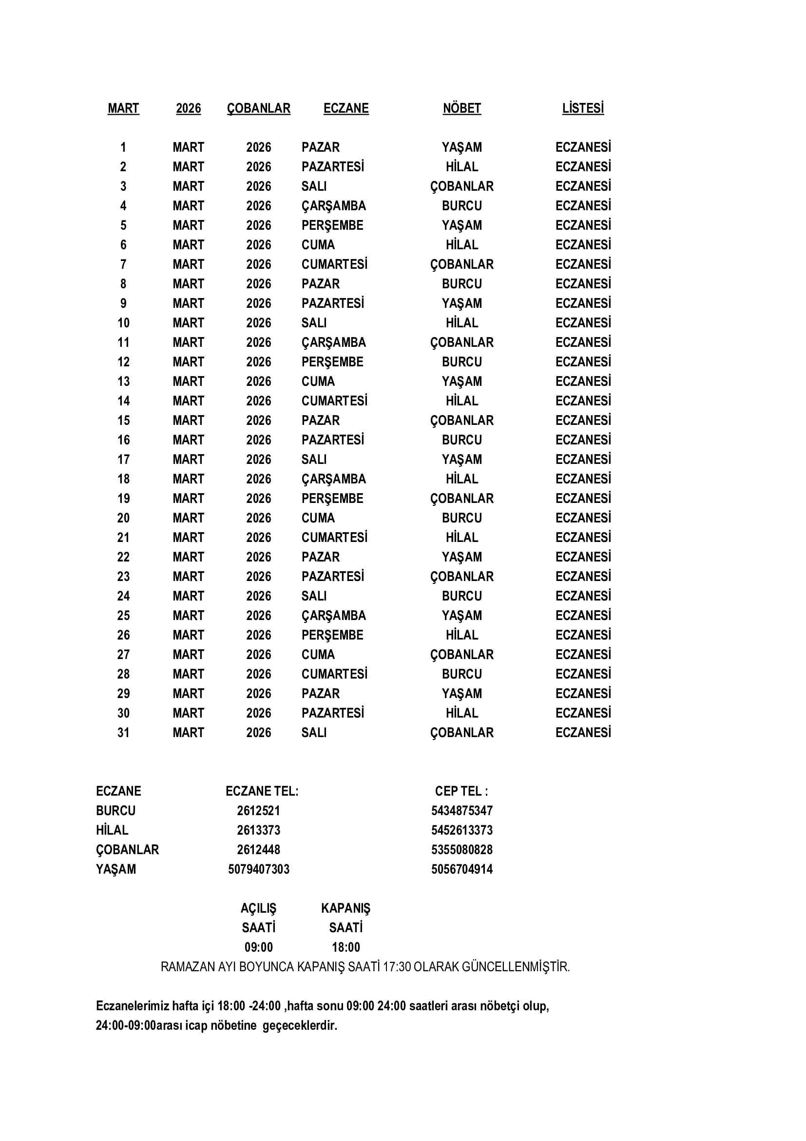 Çobanlar Nöbetçi Eczaneler