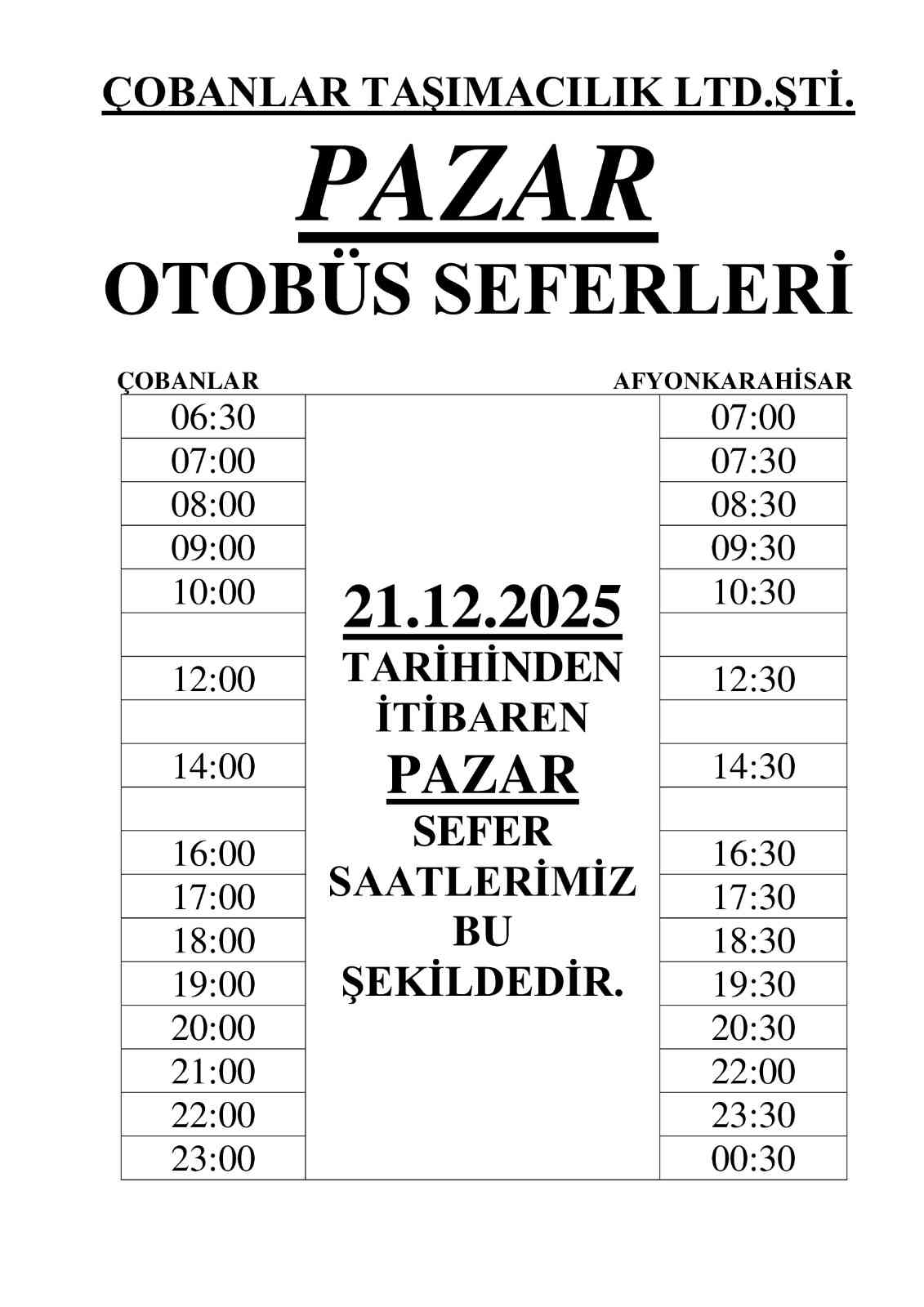 Otobüs Sefer Saatleri